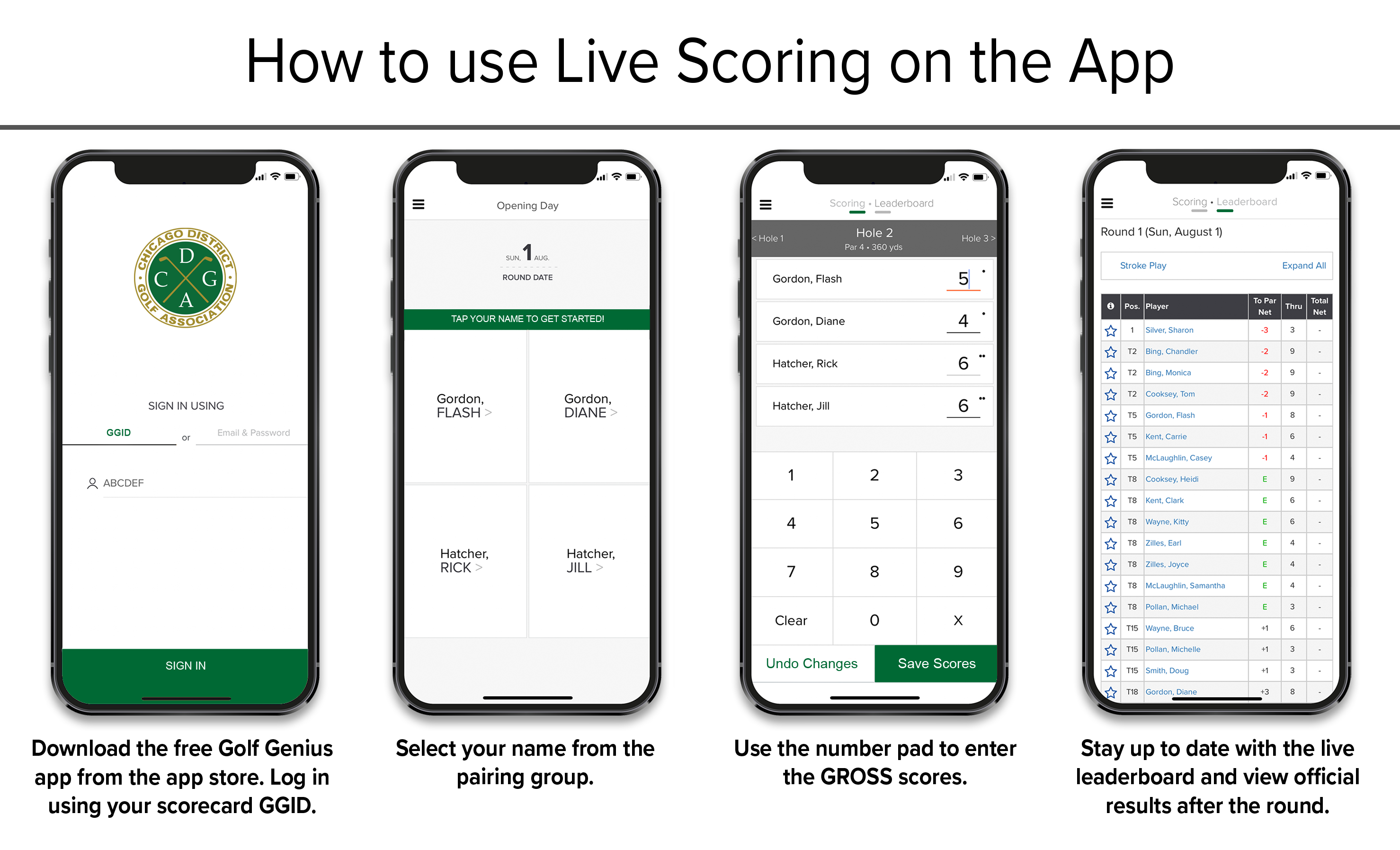 Your official scorecard will be completed electronically. Bring your smartphone and have the Golf Genius app ready to use. The GGID will be given on site the day of the event.